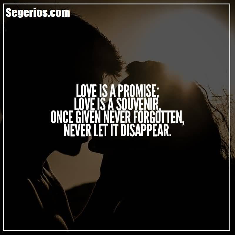Love is a Promise, Love is a Souvenir, Once given never forgotten, Never let it disappear.